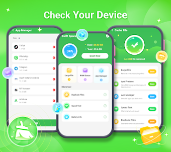 Swift Space Cleaner är en användarvänlig app för Android som hjälper användare att hålla sina enheter organiserade och fria från onödiga filer. Med appens funktioner kan användare enkelt hantera temporära filer, identifiera stora filer och kontrollera nätverksanslutningens status. Genom en smart skanning identifierar appen cache-filer som kan raderas för att frigöra lagringsutrymme.